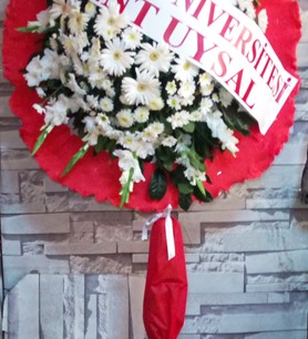 Beyaz çiçekler ile yapılmış kırmızı süslemelei çelenk siparişi.Düğün,açılış,tören,için çiçek siparişi.Firmaya özel logo yazımı.Düğün, açılış, kokteyl, fuar için çelenk çiçek siparişi, çelenk siparişi, Gaziosmanpaşa çelenk siparişi,kağıthane çelenk siparişi,fatih çelenk siparişi,eyüp çelenk siparişi,bayrampaşa çelenk siparişi,sultangazi çelenk siparişi,beşiktaş çelenk siparişi,beşiktaş çelenk siparişi,fuar çelenk siparişi,