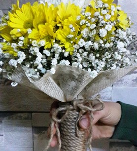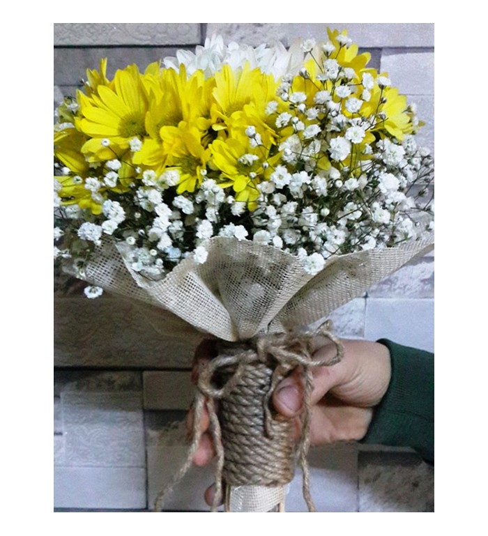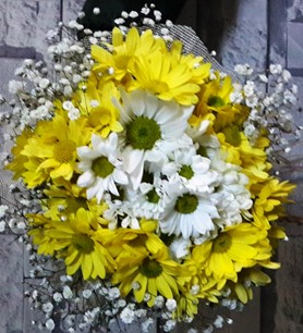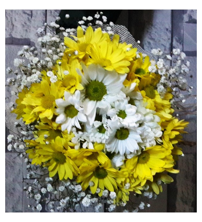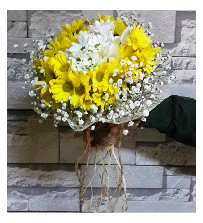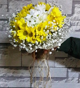Sarı papatya gelin buketi; Sarı papatya, beyaz papatyalar ile Gelin el çiçeği, gelin buketi.